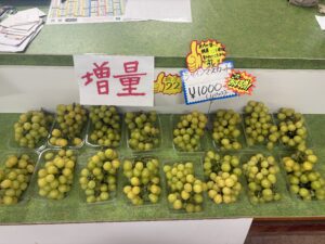 シャインマスカット、贈答用も家庭用も最終日まであります。