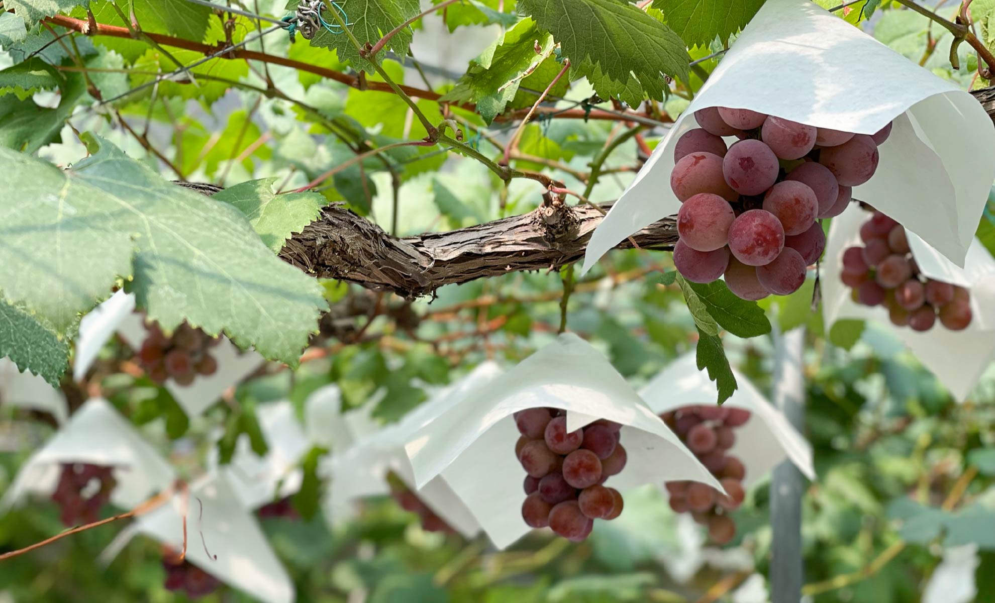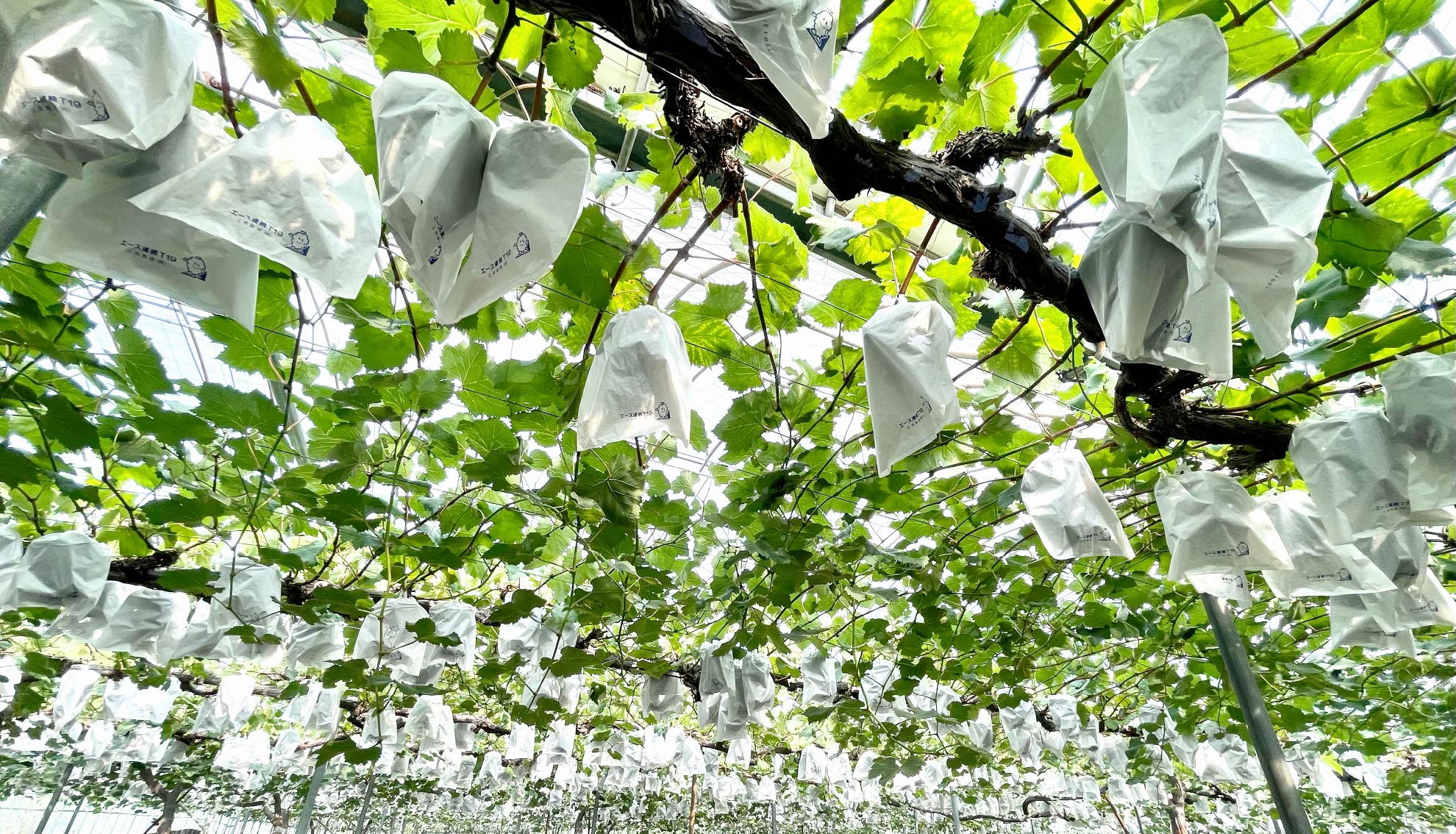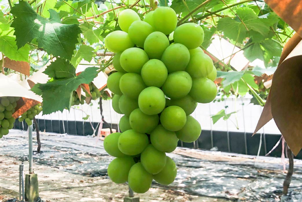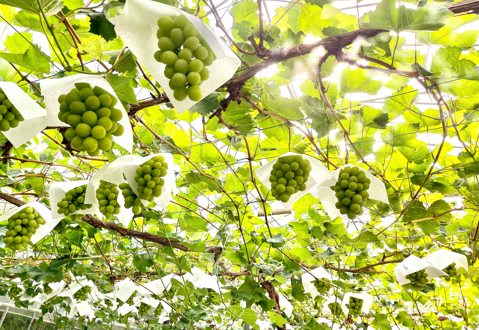 マスカット種無しで⽪ごと⾷べられる⻩緑⾊のぶどうで、強い⽢みと芳⾹が特徴。近年⼈気のある品種です。